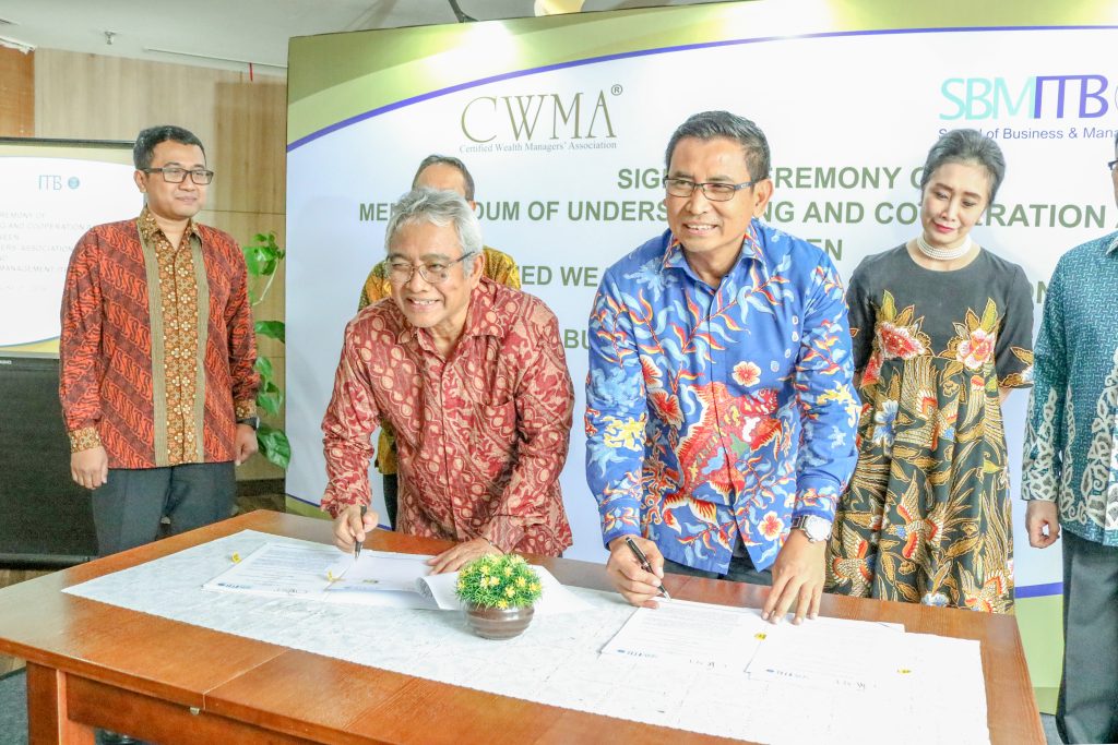 School of Business and Management ITB (SBM ITB) and Certified Wealth Managers’ Association (CWMA) signed a mutual agreement to improve the students’ competence in Wealth Management. “When our students have the CWM professional certification, it will help them get a job especially in financial industry such banking,” explained by the Dean during signing ceremony at Jakarta Campus (21/08/2019).