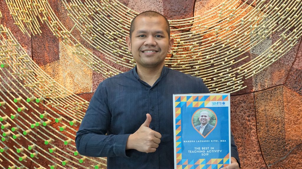 Mandra Lazuardi Kitri is one of SBM ITB young faculty member who received an award as the best in teaching activity in 2019. Mandra is often called by students as “Kak Mandra” has served at SBM for 7 years since his arrival as a lecturer in 2012. “It was very surprising to receive this award, but of course I am very happy and excited.” he said with a broad smile.