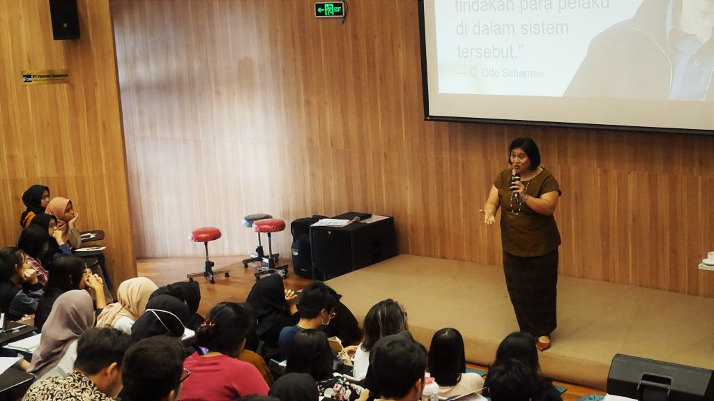 Bandung – Bringing U Theory as core material, Cokorda Istri Dewi was invited to be guest lecturer in Wednesday, February 19th 2020 at Nemangkawi Auditorium SBM ITB. For more than two hundred students, Cokorda gave knowledge about how U Theory was built and what is the impact on ourselves also sustainable development.