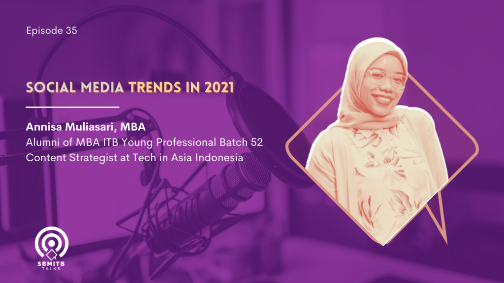 So, In order to begin this new year. SBM ITB Talks will be discussing the social media trend in 2021 with Annisa Muliasari as one of the alumni in SBM ITB.