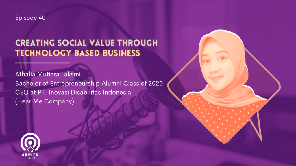 Technology is the main actor in all aspects of human life currently, every aspect will utilize the technology to make their life easier. Technology makes human behavior change. It will give the effect to the business aspect, every businessman or entrepreneur should know the behaviour of their consumer and they should transform their business value to the consumer rightly. So, In order to make it all clear. SBM ITB Talks will be discussing about creating social value in technology based business with Athalia Mutiara as one of the alumni in SBM ITB, and also the founder and CEO of hearme.
