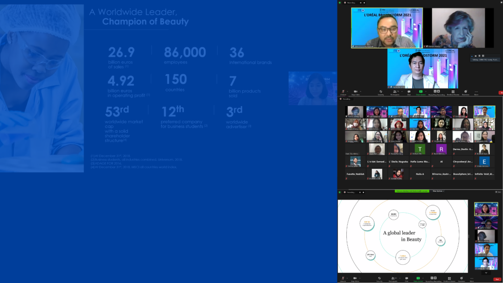 ITB Career Center, SBM ITB Student Affairs and L’Oréal Indonesia conducted an online workshop to assist undergraduate ITB students who participated in L’Oréal Brandstorm 2021, Saturday (20/2/2021). L’Oréal Brandstorm is a competition of innovation for undergraduate students around the world to “Invent the Beauty Shopping Experience through Entertainment”.