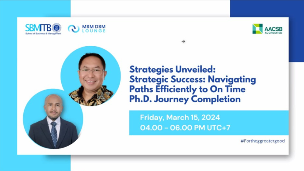 Abdurrahman merupakan satu dari dua alumni yang berbagi pengalaman dalam MSM DSM Lounge SBM ITB pada Jumat (15/3). Selain Abdurrahman, Dr. Wiwin Sujati, M.M., lulusan DSM SBM ITB tahun 2024, juga turut membagikan pengalamannya selama menempuh studi doktor.