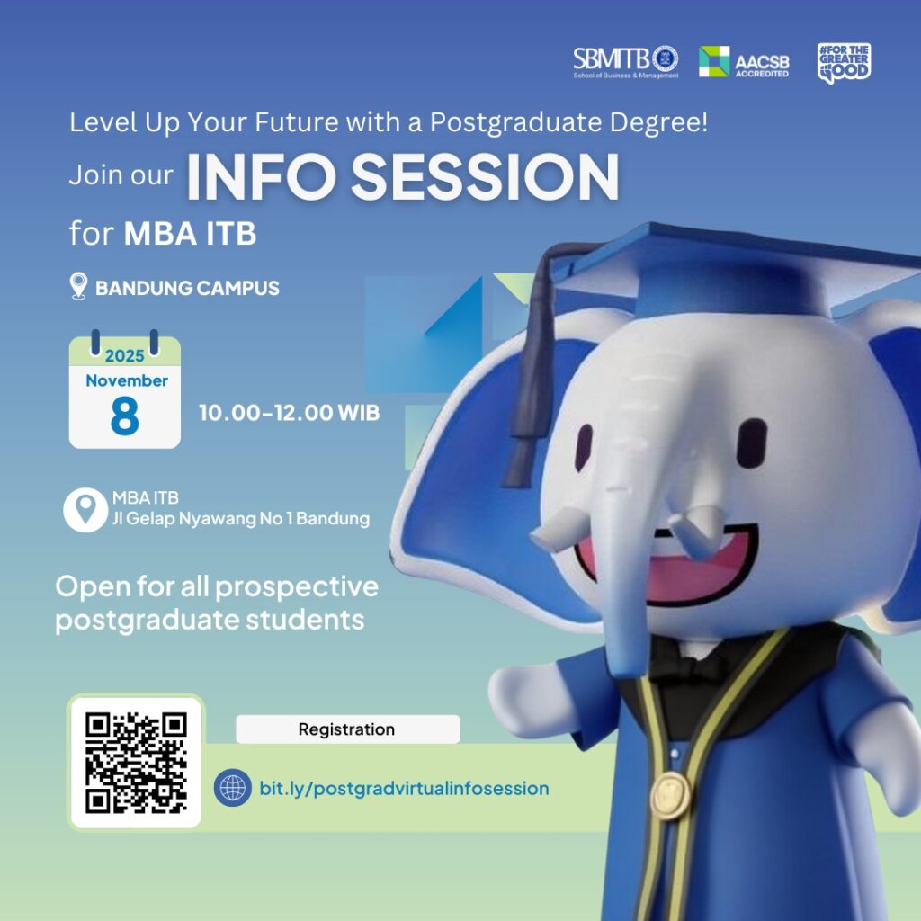 SBM ITB invites you to join our MBA ITB Program Info Session on Saturday, November 10, 2025, from 10:00 to 12:00 AM (WIB). This is your opportunity to explore and compare our diverse programs: