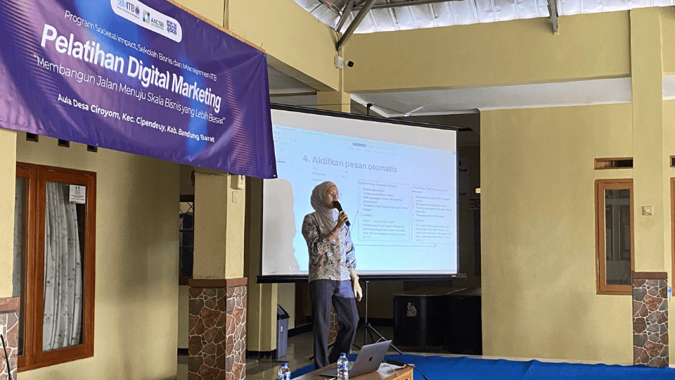 The Societal Impact unit of SBM ITB carried out a community engagement program in Cirata Village, West Bandung Regency, through a digital marketing training held on August 4, 2025. The program was led by Prof. Wawan Dhewanto, together with Tiffany Ar Rahim and Syifa Farhatunnisa El-Baehaqi, who have been actively supporting Cirata as one of SBM ITB’s development partner villages. The training aimed to strengthen the understanding and skills of local micro, small, and medium-sized enterprises (MSMEs) in utilizing digital tools for product promotion, content creation, and online business management. This initiative was designed based on findings from a Systematic Literature Review (SLR), which indicated that necessity-driven MSMEs particularly require digital marketing literacy as a key factor to scale up their businesses.