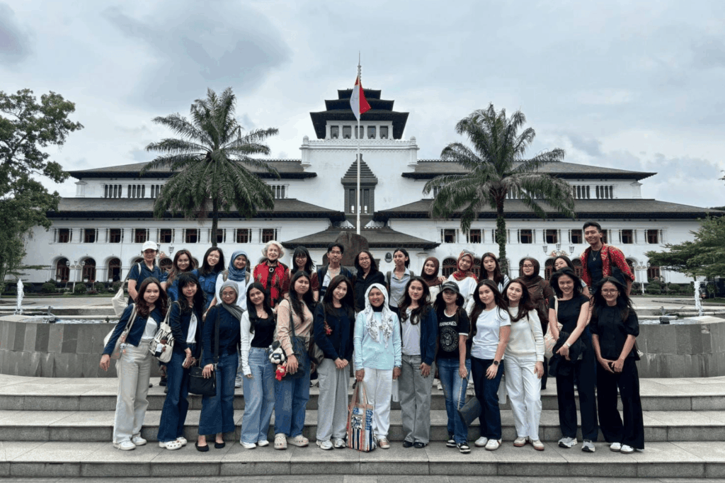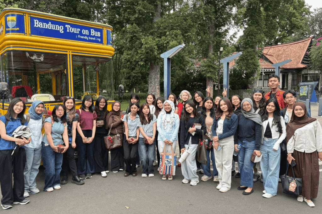During the tour, students analyzed how Bandung’s historical identity is transformed into a marketable urban tourism experience. The route passed several city icons, including Gedung Sate, Jalan Braga, and Alun-Alun Bandung.